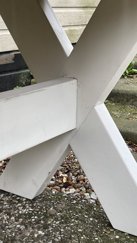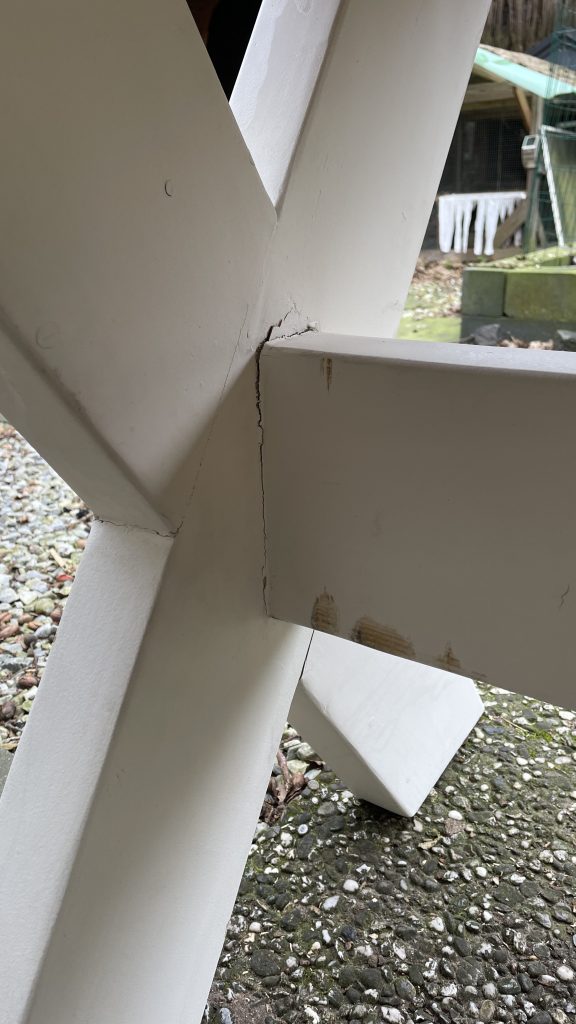 De tafel is wat uit zijn verband, en weet nog niet wat het gaat kosten om dit te herstellen. Hout is relatief makkelijk te bewerken, maar een timmerman kost ook nog wel wat.